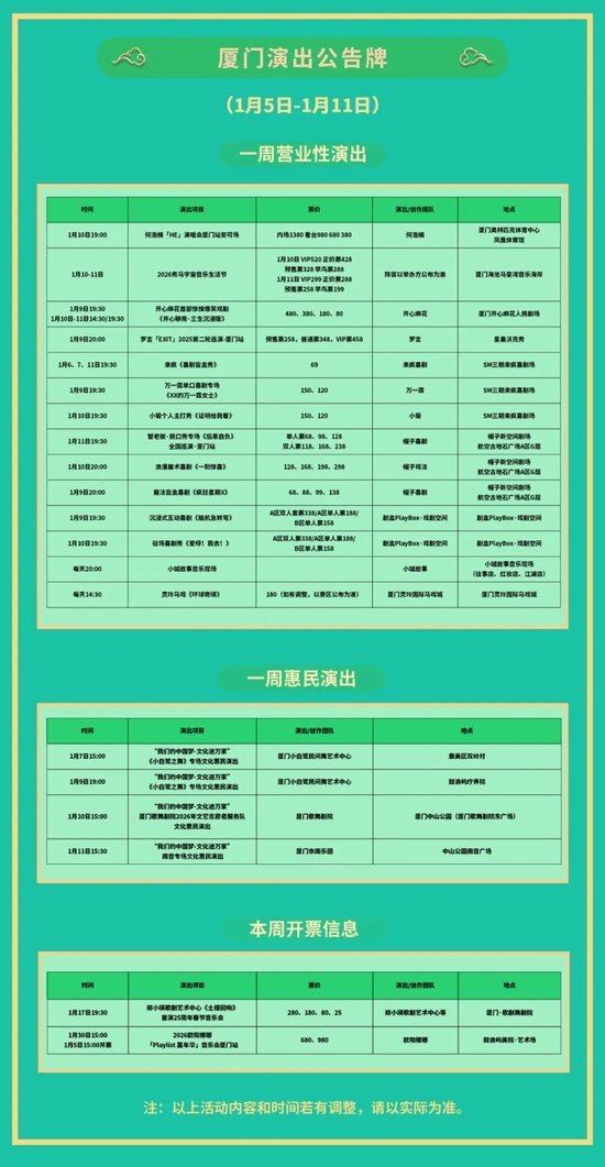 本周厦门演出公告牌来啦