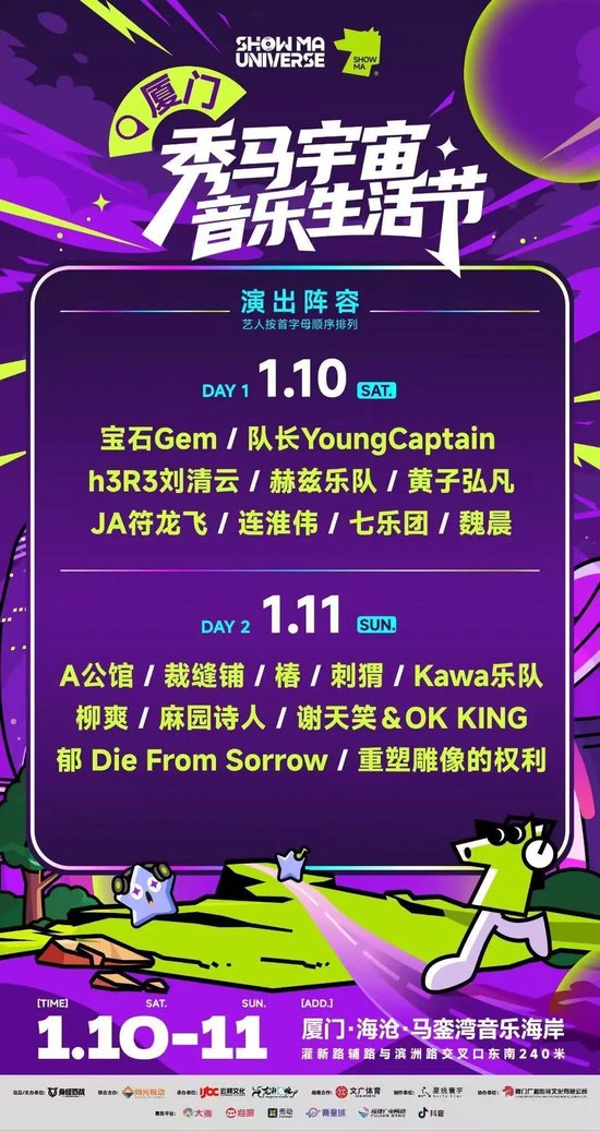 全国首个马拉松主题音乐节亮相厦门,鲜花鹭马,音乐激扬。2026年1月10日-11日,厦门海沧马銮湾音乐海岸秀马宇宙音乐节生活节,让鼓点交响海浪,用脚步丈量热爱。揣好期待,带上搭子,去赴这场“马力十足”的宇宙级约会,2026的开篇就是最燃的live现场。