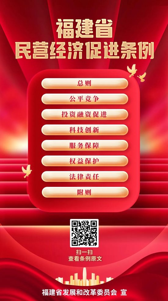 关注2026年1月1日起,《福建省民营经济促进条例》施行。