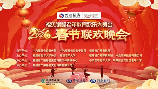 本次晚会由省委宣传部、省委老干部局、省广播电视局指导,福建省老年大学协会、福建老年大学、福建省广播影视集团、兴业证券股份有限公司联合主办。晚会将于2026年2月11日小年夜,在福建电视台文体频道及海博TV同步首播;春节期间(正月初一至初七),福建电视台文体频道将安排重播。