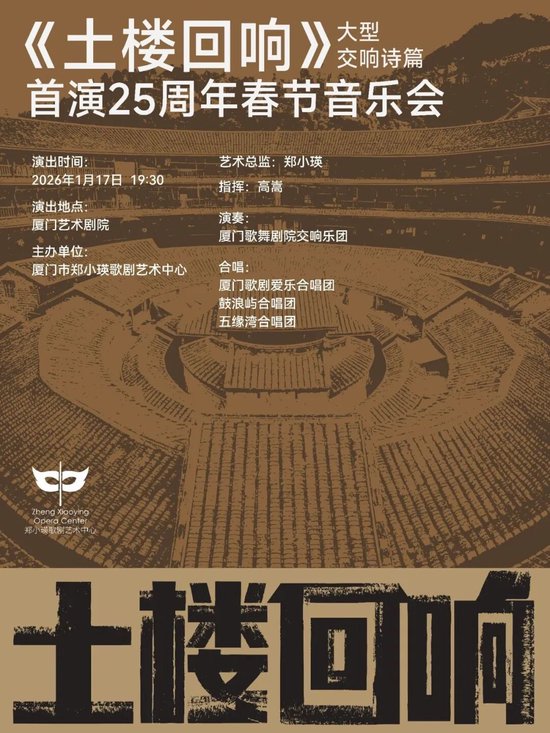 当客家先民的坚韧足迹融入交响韵律,当东方山野的文化底蕴碰撞西方艺术形式,一部跨越25载岁月的音乐史诗,即将在春节前夕的厦门再度奏响。大型交响诗篇《土楼回响》首演25周年春节音乐会将精彩上演,让我们共赴这场承载民族精神与文化记忆的音乐之约。