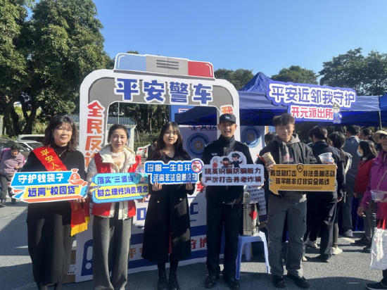 活动现场,“平安警车”成为热门打卡点,市民纷纷驻足拍照,在互动中化身“反诈代言人”,让“全民反诈”的理念悄然传播。更有一群小学生手持“世界很大,小心有诈”“全民反诈,天下无诈”的宣传KT板,用稚嫩却坚定的声音喊出反诈口号,成为现场最亮眼的“反诈小卫士”,让防范意识从小扎根。