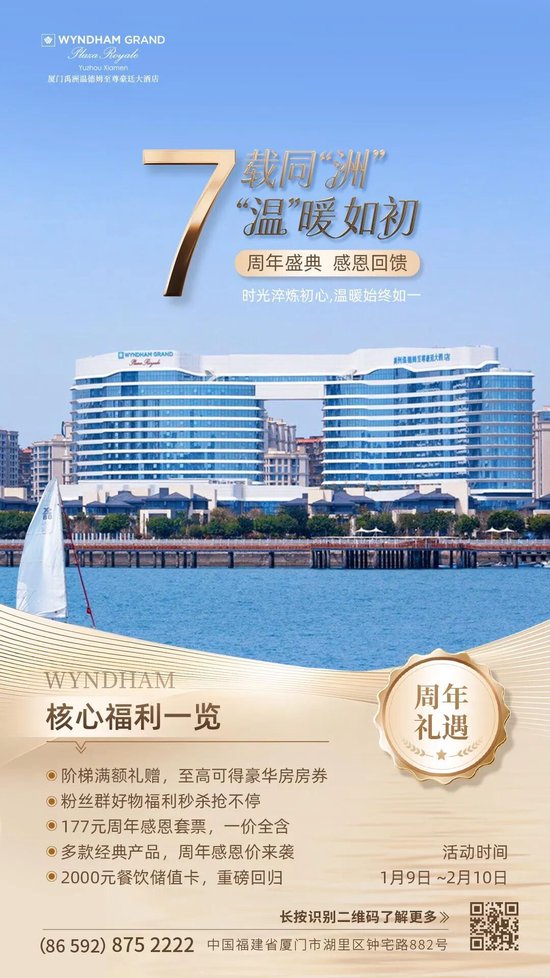 👉简介:厦门禹洲温德姆至尊豪廷大酒店值此七周年庆典,诚邀共赴一场鹭岛微度假。