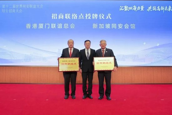 本次招商大会授牌设立新加坡同安会馆、香港厦门联谊总会等2个招商联络点。这是翔安区扩大开放、深化国际经贸合作的重要举措,将搭建起常态化、机制化的海外招商桥梁,让全球乡贤与企业家更便捷地链接翔安机遇。