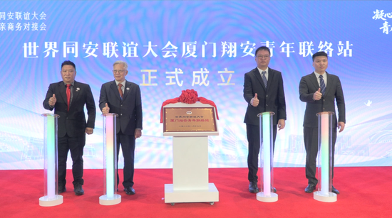 会上举行了“世界同安联谊大会厦门翔安青年联络站”揭牌仪式。该联络站的设立,旨在构建一个常态化、机制化的青年交流合作纽带,未来将定期组织活动,促进海内外翔安籍青年在商务、文化、科技等多领域的深度互动与合作,成为凝聚青年力量、服务家乡发展的重要平台。