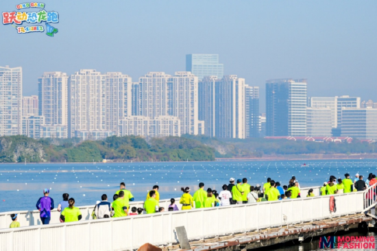 2026年1月10日上午,由晨曦时尚打造运营的亲子赛“跃动恐龙跑”在集美杏林湾浪漫开跑。500组亲子家庭身着恐龙主题T恤,沿着“厦门最美打卡点”之一——杏林湾海上自行车道欢乐前行,用4公里童趣奔跑开启新年第一场亲子运动派对。