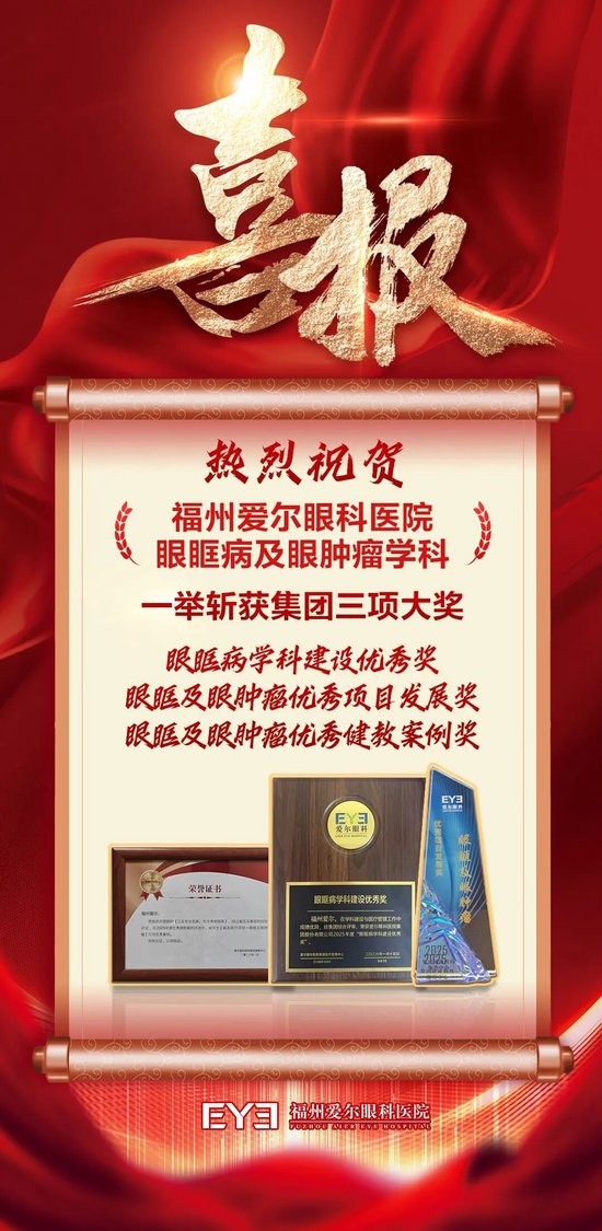 喜报丨福州爱尔眼科医院眼眶病及眼肿瘤学科实力出圈,斩获三项大奖