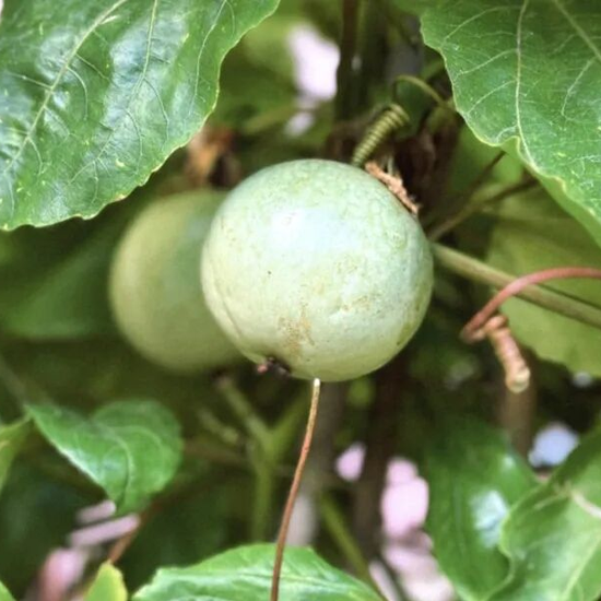 几株百香果藤爬上竹架