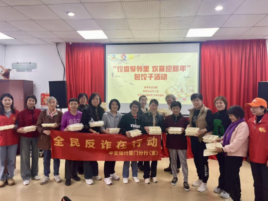 面对老年群体这一易受诈骗侵害的重点人群,松柏支行志愿者携手育秀社区,精心策划了一堂“老年反诈公开课”。志愿者用通俗易懂的方言和生动形象的演示,详细讲解了针对老年人的各类诈骗套路,如“保健品诈骗”、“养老项目骗局”、“冒充公检法”等,并手把手教学如何使用手机银行安全功能、识别可疑链接。课后,支行与社区共同组织了温馨的包饺子活动。大家围坐一起,边包饺子边拉家常,工作人员在轻松氛围中继续解答老人们的金融疑惑,将反诈知识包进“暖心饺”,让金融安全伴随着温暖与关怀,融入老年人的心田。