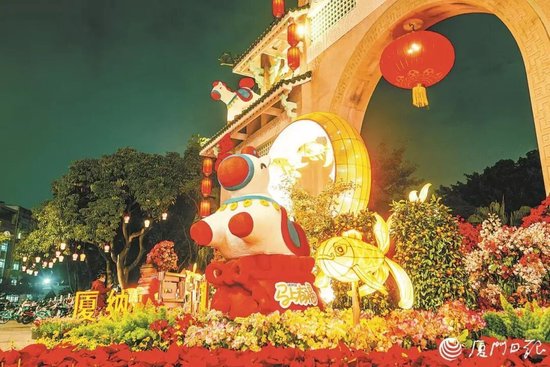 今年,翔安区在公园广场、交通枢纽等核心区域,设置大型马年主题灯组和灯笼走廊,融入祥云等传统元素,营造欢乐喜庆的春节氛围。