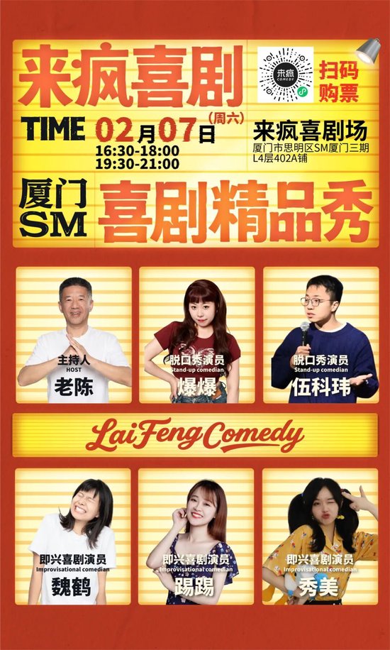 这是一场“随机”的多品类实验喜剧,每场开出的惊喜都不一样!不定期由本地主咖演员或外地嘉宾的搭配组合呈现出:没有剧本,没有NG,即兴互动+爆笑解压实验,请和我们一起放肆快乐吧!每场演员阵容不同,以老带新,笑点密集,全网高分好评,场场爆满,一定要来线下亲身体会,才能感受到排山倒海的快乐!