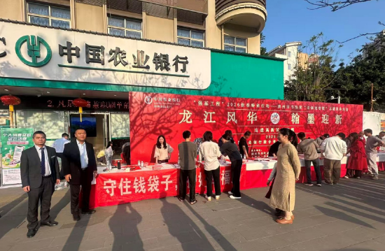 南靖支行走进梅林镇梅花公园开展“古镇梅花笑春风——送福送春联支农惠农服务”活动,将适配乡村需求的便民惠农金融产品送到群众手中,进一步推动金融资源与乡村产业深度融合。平和支行携手平和县坂仔镇政府,在镇政府门口成功举办“骏马奔腾开盛景 翰墨飘香颂华年—2026年春联送福活动”。龙海支行携手漳州市书法家协会、高新区九湖镇人民政府,共同举办“龙江风华 翰墨迎新”送福送春联暨金融知识宣传活动。龙文支行携手漳州市龙文区文学艺术界联合会、区文化体育和旅游局等主办单位,在闽南水乡开展“福马当先 福启新程”2026迎春送福公益活动。