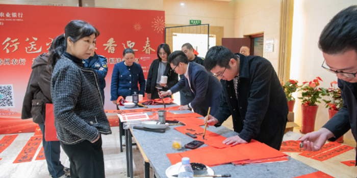 农业银行漳州分行联合承风书法工作室,在芗城区金穗大厦开展了“农行送福 翰墨迎春”送春联及“‘马’上送信”征信主题宣传活动,将浓浓的年味与实用的征信知识送到客户身边。