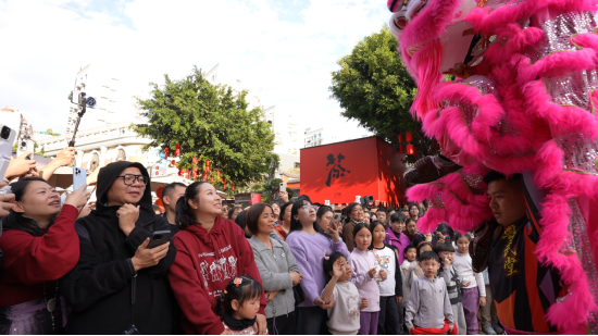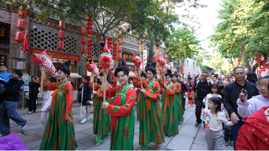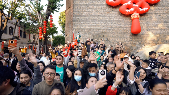 现场满是欢声笑语,不少游客循着非遗巡游的脚步打卡逛玩,沉浸式感受台江的新春氛围与闽韵文化,红围巾一路飘曳,恰似将台江的老底子和新潮流巧妙串联。一位现场市民也开心分享了自己的体验:“刚在启幕式上幸运收到红围巾,暖烘烘的,先跟着非遗巡游逛了上下杭,再跟着攻略逛到闽江之心,还在青年广场和小马合了影。今年是边走边‘集福’,能感受到台江满是年味和福气!”