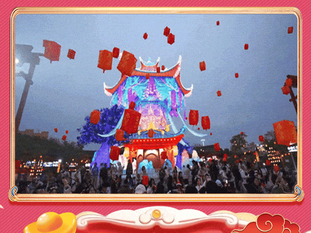 六大国风仙侠主题灯组流光溢彩,祈愿千灯会、烟花秀、仙侠天团见面互动、仙侠奇幻大巡游、新春奇幻盛典等主题演出精彩不断,还有新春熊熊奇遇记主题氛围,举办新春奇幻盛典、熊出没鸿运花车巡游、“好运熊”迎宾秀、熊明星新春见面会、财神暴富班……喜气洋洋欢乐多。