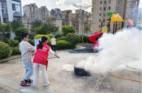 随后的消防演练更将理论落地,孩子们在平安产险志愿者指导下操作灭火器、模拟火场逃生,于实践中掌握自救技能。“原来灭火器要‘提拔握压’,撤离时要弯腰捂鼻!”一位学生兴奋分享收获。
