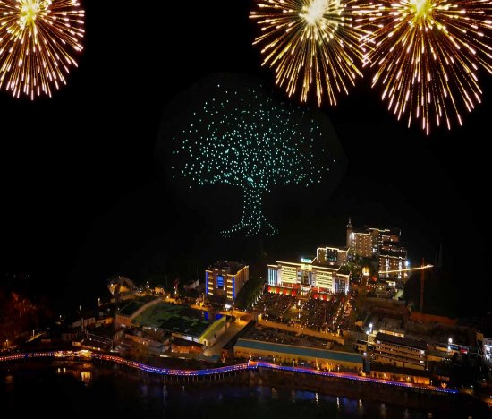 焰火晚会分为《一花一树一世界》、《祥瑞献福》、《骏跃福满新春》三个篇章,夜空中,五彩斑斓的艺术焰火绚丽绽放,有高空礼花、艺术特效、组合造型,还穿插进行无人机表演。顿时焰火耀腾光泽夜空,爆燃元宵之夜。圣农集团员工、光泽市民大快朵颐美奂美轮的视觉盛宴,不断响起热烈的掌声。(陈志鸿)