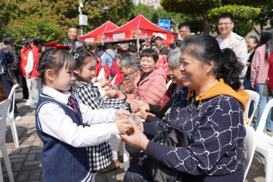 上午9时30分,铿锵的《鼓舞》拉开活动序幕,王庄第一幼儿园的孩子们用稚嫩童声朗诵《当你老了》,真挚的情感让现场观众动容。林勉海等孝老爱亲先进典型被现场礼遇,赢得阵阵掌声;非遗武术《金狮拳四门》刚劲有力,歌曲《常回家看看》温情款款,拗九节知识互动问答更是让市民在趣味抢答中重温民俗知识。最动人的是送“福”粥环节,志愿者将热气腾腾的拗九粥送到老人手中,软糯的粥品裹着甜香,暖了手心更暖了心房。
