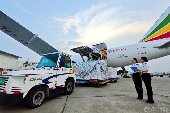 厦门机场海关关员开展金砖专线进口货物监管作业。(本报资料图)