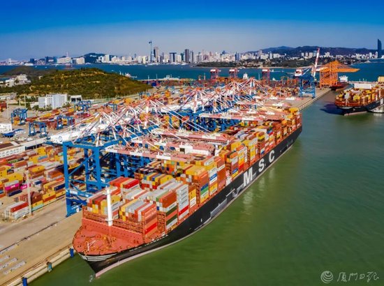 厦门港集装箱吞吐量连续八年突破千万标箱,位居全国第7位、全球第14位。共有148条“丝路海运”命名航线,通达48个国家和地区的150座港口,联盟成员367家。