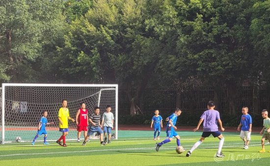 市民在免费开放的校园体育场上运动。(本报记者 林铭鸿 摄)