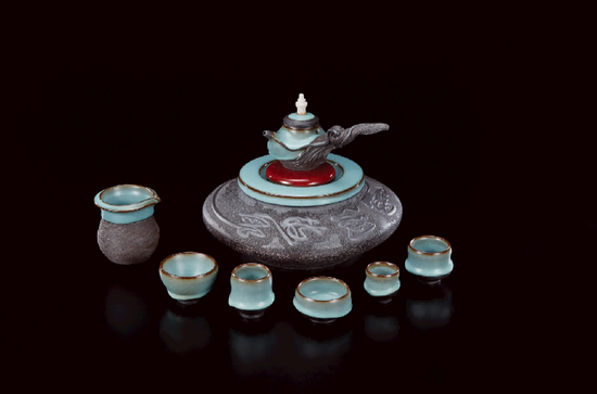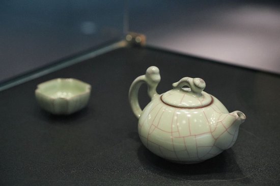 北宋官窑传承人王东霞《如意封侯壶茶具》融合皇家气度与吉祥寓意;