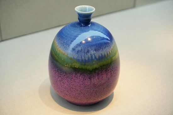 台湾陶艺家黄玉英《薰衣草花瓶》,以独门釉药与控温技法,烧出粉紫、嫩绿、碧蓝等层次釉色,如铺展普罗旺斯薰衣草田,浪漫动人。
