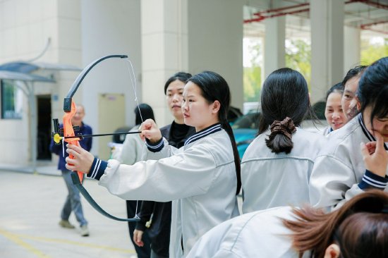 11时,互动实践板块在园区食堂楼下热闹开启。现场设置“分类射箭・百发百中”“猪猪法则・智趣问答”“分类圈圈・环环相扣”三大趣味互动区,将垃圾分类知识融入游戏环节,吸引众多企业职工踊跃参与。
