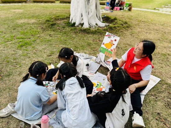 化身自然导师的志愿者们,引领孩子们开启了一场“微观自然探索”。手持放大镜,俯察叶脉的纹理、昆虫的足迹,孩子们在观察中体悟生态循环的奥妙,于细微处萌发对自然的敬畏。生动的宣教海报旁,垃圾分类与低碳生活的知识如春雨般润物无声,引导每一位孩子立志成为守护地球的“小卫士”。