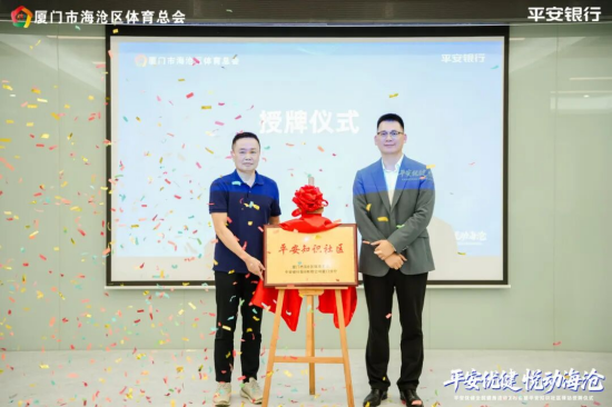 项目启动仪式在海沧体育中心新闻发布厅圆满举行。海沧区体育总会、平安银行厦门海沧支行携手合作,以体育为桥、以金融为翼,为市民打造健康 + 服务双赋能的全新体验。在双方代表及现场嘉宾的共同见证下,厦门市海沧区体育总会与平安银行厦门分行正式携手,共建“平安知识社区”。这块沉甸甸的牌匾,不仅标志着双方合作的正式启动,更承载着一份沉甸甸的社会责任——将金融知识、安全理念与社区生活深度融合,为广大居民打造一个“学金融、懂安全、防风险”的温馨家园。