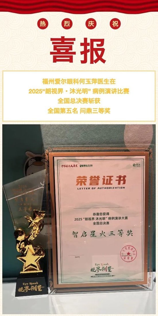 喜报丨福州爱尔眼科何玉萍医生斩获全国第五名,问鼎三等奖!